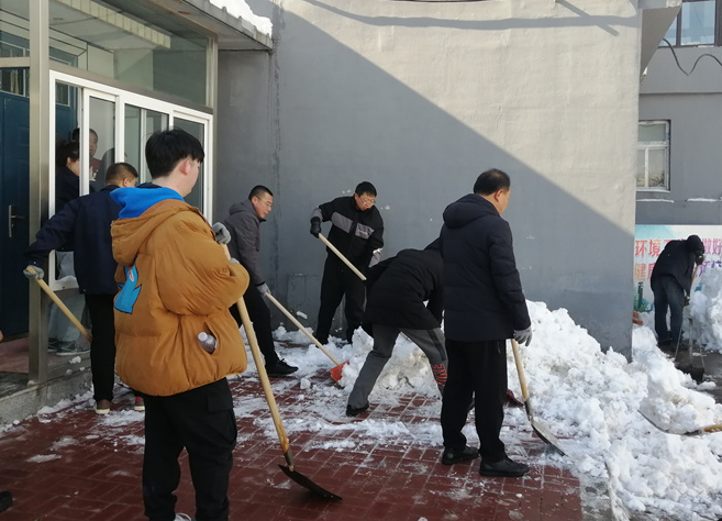 早晨寒冷的飛雪還沒有停,道路不通、公交停運(yùn),許多同志步行很長時(shí)間來到工作崗位,第一件事就是清除公司院內(nèi)外、水廠周圍、營業(yè)大廳門前等道路積雪。大家不顧天氣寒冷,掃積雪、鏟冰層、清雜物,干得熱火朝天。黨員干部率先垂范,以實(shí)際行動(dòng)踐行“我為群眾辦實(shí)事”的初心使命,展示出黨員干部團(tuán)結(jié)協(xié)作的良好精神風(fēng)貌。風(fēng)雪雖大,卻敵不過眾志成城。公司干部職工齊心協(xié)力,經(jīng)過幾小時(shí)的共同奮戰(zhàn),及時(shí)保證了公司院內(nèi)外、各廠區(qū)、營業(yè)大廳道路的安全暢通,營造了和諧、友愛的社會(huì)環(huán)境,展現(xiàn)了員工良好的集體責(zé)任感和團(tuán)隊(duì)協(xié)作精神。