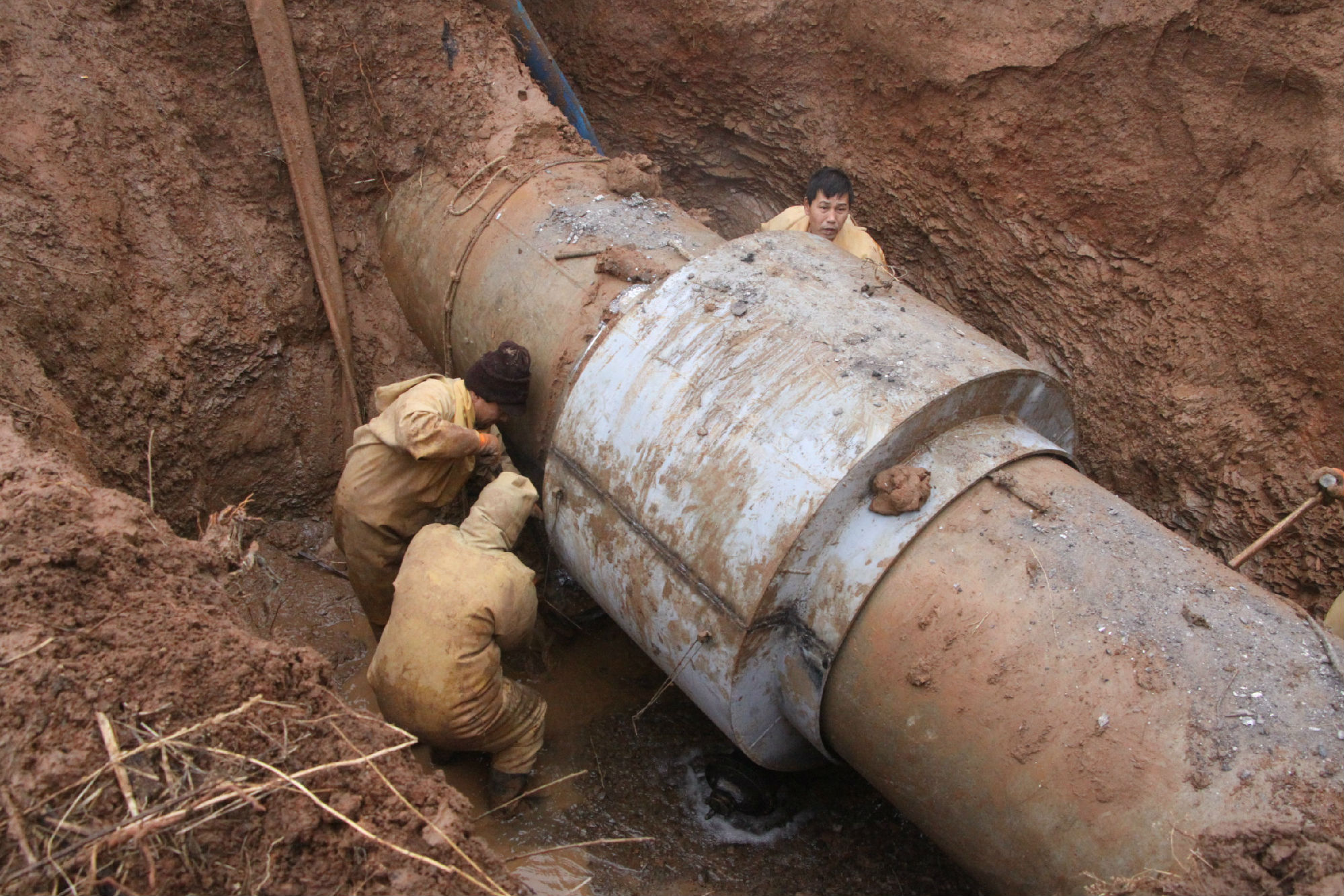 奮力搶修 12月1日早7時,施工人員開始搶修作業(yè)。由于天氣寒冷,地面結冰,給戶外施工造成很大困難。為爭取搶修時間,盡快恢復供水,搶修工程指揮部決定將預計15個小時的排水時間縮短到11個小時,然后一邊排水一邊作業(yè)。在緊張的搶修過程中,搶修人員分工明確、密切配合?,F場一片泥濘,施工人員輪番下到水坑里作業(yè),穿著單薄的防水服在冰冷的泥水里一站就是幾個小時,沒有一個人叫苦喊累。排水、裝卡子、電焊、灌鉛、打卡子,一道道工序施工,緊張而又有條不紊。搶修是野外作業(yè),沒有吃熱乎飯的條件,餓了只能以面包和香腸充饑,現場指揮和施工人員始終堅守在搶修一線。