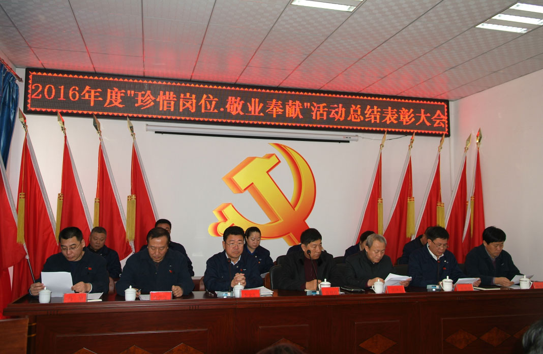 2月15日上午9時(shí),自來水公司2016年度“珍惜崗位、敬業(yè)奉獻(xiàn)”活動(dòng)總結(jié)表彰大會(huì)在高唱《國(guó)歌》聲中隆重開幕。先進(jìn)單位、先進(jìn)集體、先進(jìn)班組代表和39名先進(jìn)個(gè)人以及公司基層副職以上干部參加了會(huì)議。住建委黨委委員、副主任張庭政,政治部主任張澤起到會(huì)祝賀并講話。會(huì)議由公司黨委書記張旭濱主持。