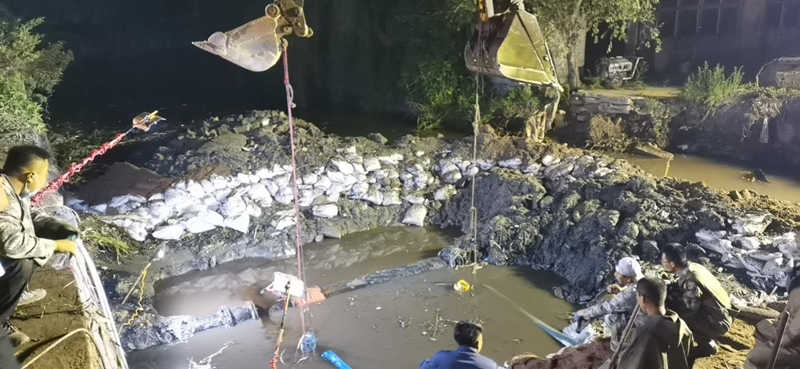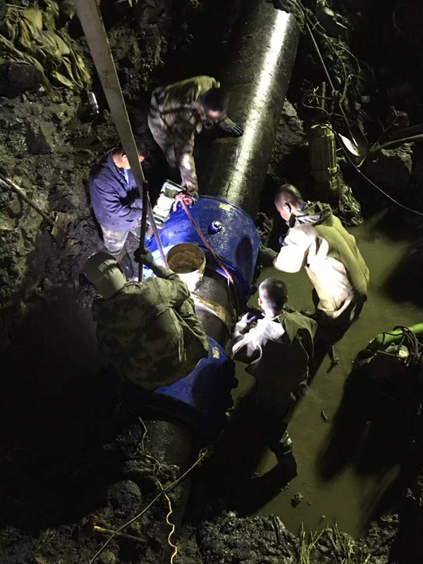 由于管道破裂處位于直徑約10米的淤泥水坑中,地勢(shì)環(huán)境非常惡劣,給搶修工作帶來了極大的難度。維修人員首先對(duì)施工地點(diǎn)進(jìn)行圍堰、降水。為防止污水倒灌進(jìn)入管線,工作人員一邊用四臺(tái)大功率水泵同時(shí)抽出圍堰內(nèi)的水,一邊控制管線泄水壓力。由于管線大,水量多,經(jīng)過4個(gè)小時(shí)的連續(xù)降水作業(yè),管線斷裂點(diǎn)才逐漸顯露出來,工作人員立即對(duì)破裂部位進(jìn)行更換。夜晚涼意不斷,坑內(nèi)泥濘不堪,維修人員忍著腥臭的淤泥,不顧蚊蟲叮咬,埋頭苦干,與時(shí)間賽跑,他們不怕臟不怕累,全力以赴按下?lián)屝薜摹翱爝M(jìn)鍵”,跑出了“加速度”,經(jīng)過全體維修人員的連夜奮戰(zhàn),于當(dāng)晚23時(shí)搶修結(jié)束,23:30恢復(fù)供水,當(dāng)晚經(jīng)對(duì)西山坡6號(hào)泵房取水樣化驗(yàn)水質(zhì)完全達(dá)標(biāo)。