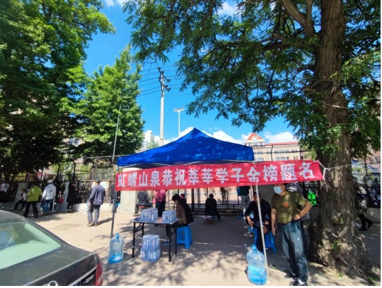 踐行社會責任。自來水公司虹螺山泉飲品有限公司在幾個不同的高考考點設(shè)置服務(wù)點,為廣大考生及其家長提供休息場所和免費礦泉水,并設(shè)有服務(wù)人員,隨時為考生和家長提供幫助。