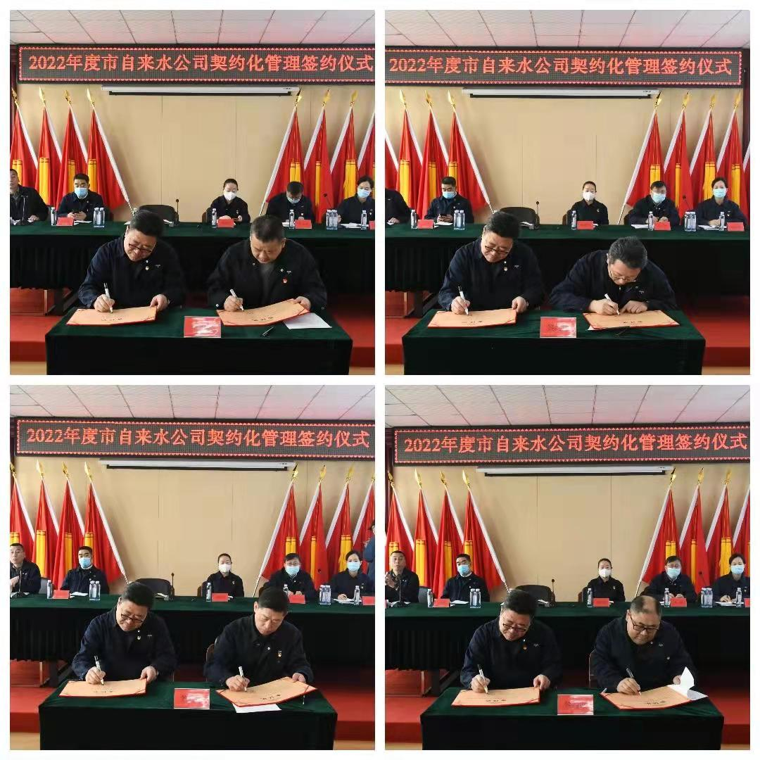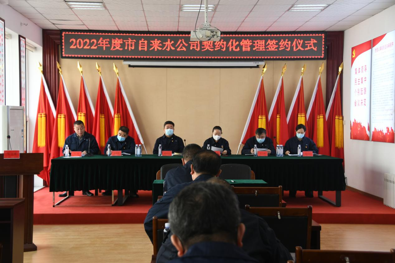 3月10日上午,市自來水公司在公司大會議室舉行2022年度契約化管理簽約儀式及營商環(huán)境提升年承諾書簽定儀式。會議由公司副經(jīng)理馬旭主持,公司領(lǐng)導(dǎo)班子成員、相關(guān)責(zé)任部門及二級法人單位負責(zé)人參加會議。