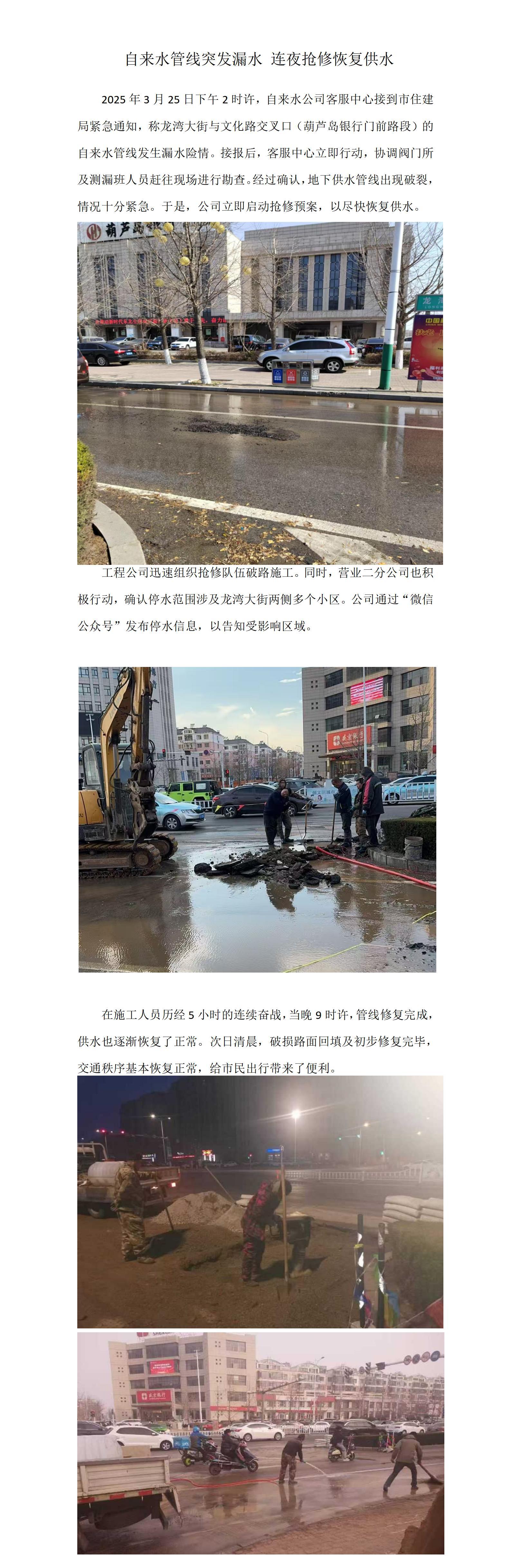自來水管線突發(fā)漏水 連夜搶修恢復(fù)供水