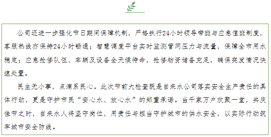筑牢民生供水防線 守護(hù)雙節(jié)用水安全