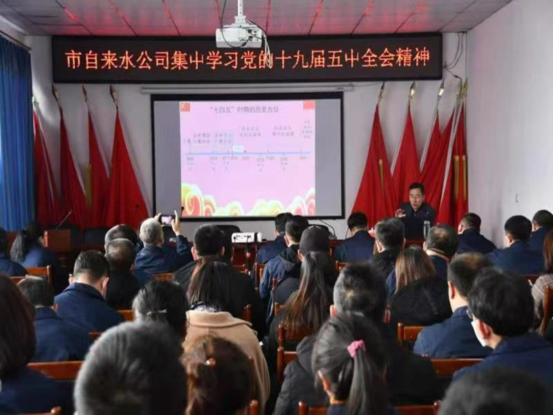 在全市興起學(xué)習(xí)貫徹黨的十九屆五中全會精神熱潮之際,11月26日下午,市自來水公司組織全體黨員集中深入學(xué)習(xí)黨的十九屆五中全會精神,邀請市委講師團(tuán)副團(tuán)長丁澤輝主講,確保黨中央決策部署得到不折不扣的貫徹落實。黨委書記張旭濱主持學(xué)習(xí)會議。
