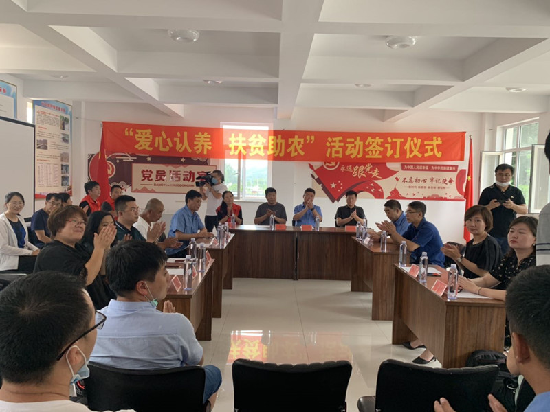 當(dāng)天上午,公司經(jīng)理李文生、黨委書(shū)記張旭濱、副經(jīng)理兼屸螺山泉飲品有限公司總經(jīng)理周小勇、市志愿服務(wù)聯(lián)合會(huì)代表及14家愛(ài)心企業(yè)代表等一行20余人,來(lái)到由建昌縣扶貧辦選定的幫扶村——建昌縣大屯鎮(zhèn)云山洞村,開(kāi)展“愛(ài)心認(rèn)養(yǎng)·扶貧助農(nóng)”現(xiàn)場(chǎng)簽約活動(dòng)。愛(ài)心企業(yè)分別出資一萬(wàn)元左右,共計(jì)13.5萬(wàn)元,用于購(gòu)買(mǎi)雞雛,利用當(dāng)?shù)?ldquo;場(chǎng)地+農(nóng)戶(hù)”形式發(fā)展養(yǎng)殖業(yè)?;顒?dòng)中,14家愛(ài)心企業(yè)代表分別與建昌縣扶貧辦、建昌縣云山洞盛世果業(yè)合作社簽訂認(rèn)養(yǎng)協(xié)議書(shū),并展開(kāi)座談交流。建昌縣扶貧辦、大屯鎮(zhèn)政府領(lǐng)導(dǎo)對(duì)本次活動(dòng)給予了極大的肯定,對(duì)市自來(lái)水公司及愛(ài)心企業(yè)的無(wú)私奉獻(xiàn)表示感謝。