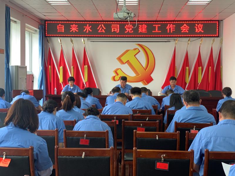 6月24日上午,市自來水公司召開黨建工作會議。公司黨委班子及擴大成員、中層正職以上干部、黨支部書記、支部委員、黨小組長參加會議。會議回顧、總結(jié)了2019年黨建工作,研究部署2020年黨建工作重點;傳達了市委組織部、市住建局有關(guān)文件精神,學(xué)習(xí)貫徹習(xí)近平總書記全國“兩會”期間重要講話精神。