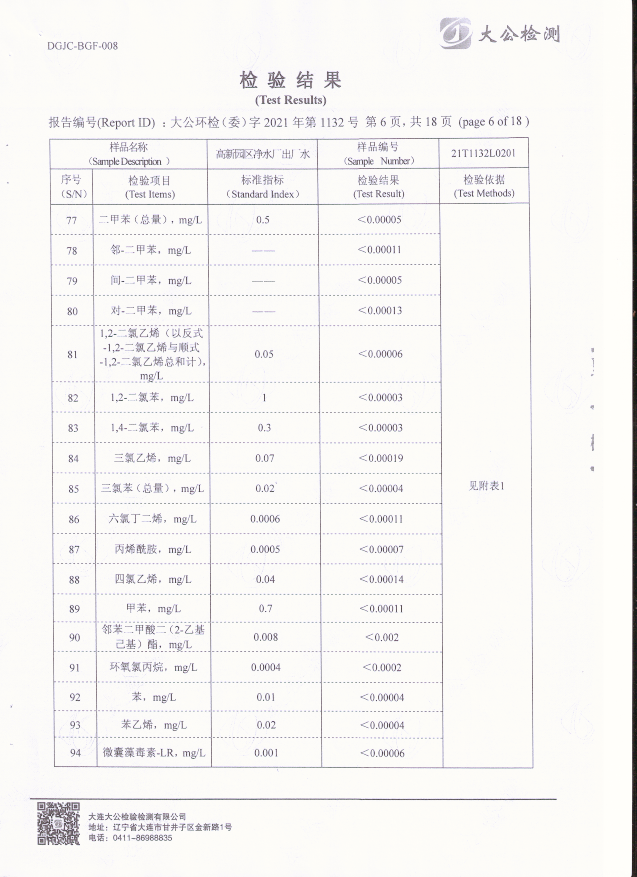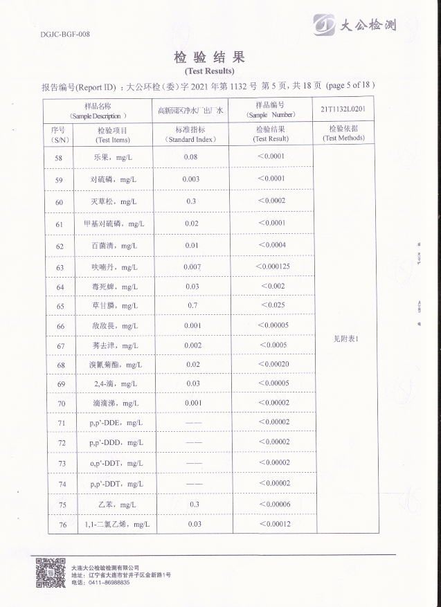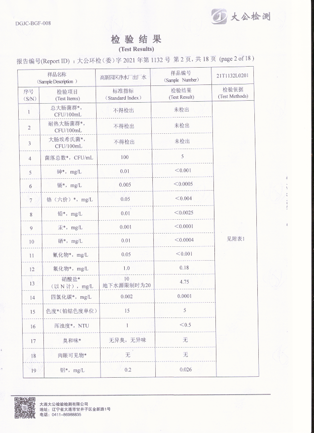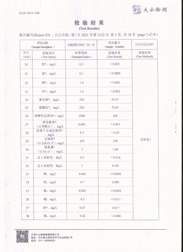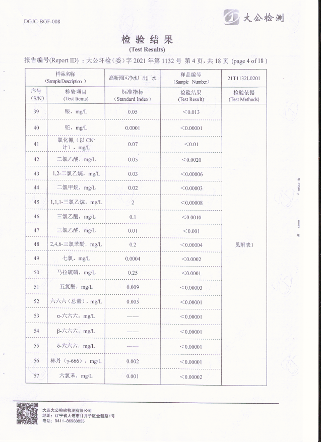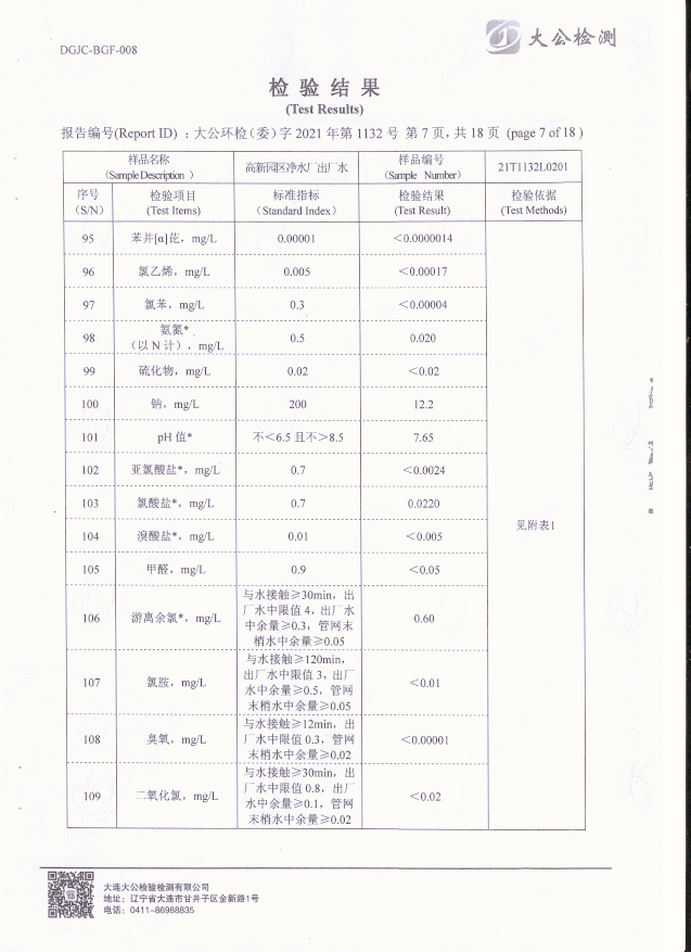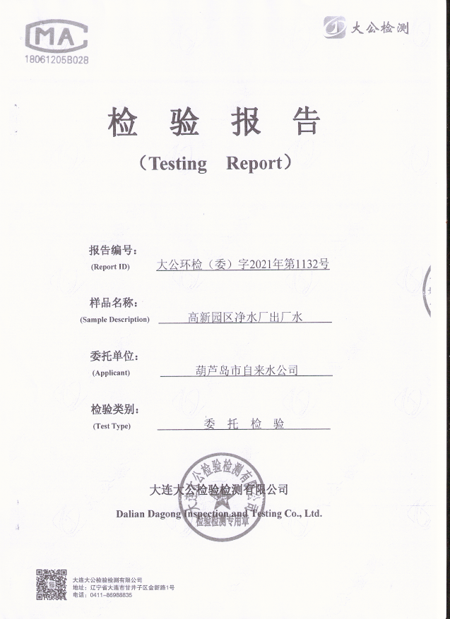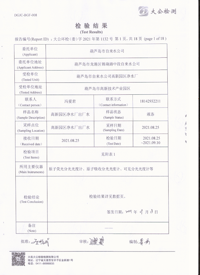 高新園區(qū)凈水廠出廠水檢驗(yàn)報(bào)告