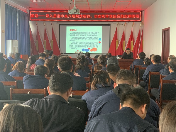 為深入開展“不忘初心、牢記使命”主題教育,進(jìn)一步推進(jìn)黨風(fēng)廉政建設(shè)深入開展,貫徹落實(shí)中央八項(xiàng)規(guī)定精神,根據(jù)公司黨委關(guān)于開展“不忘初心、牢記使命”主題教育安排,10月23日下午,公司黨委特邀市委第三巡察組組長(zhǎng)梁志遠(yuǎn)為全體黨員干部上了一堂題為《深入貫徹中央八項(xiàng)規(guī)定精神,切實(shí)筑牢黨紀(jì)條規(guī)紀(jì)律防線》的專題黨課。公司黨委書記張旭濱主持會(huì)議,公司基層副職以上干部和全體黨員100余人參加了學(xué)習(xí)。