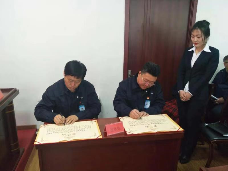 會(huì)上,公司經(jīng)理李文生與各分管經(jīng)理及部門負(fù)責(zé)人分別簽訂2019年度經(jīng)營指標(biāo)責(zé)任狀。