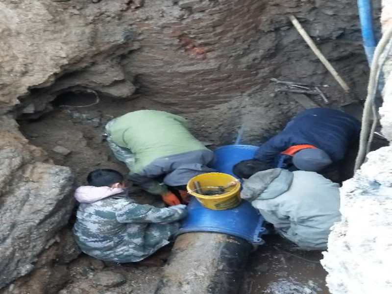 經(jīng)現(xiàn)場查看,確定為DE400管線爆裂。維修人員首先關(guān)閉了管線閥門,公司經(jīng)理李文生連夜組織召開現(xiàn)場會議,研究制定搶修方案。共計40余人參加了搶修,出動大、小搶修車輛15輛,并撒鹽3噸防止路面濕滑。