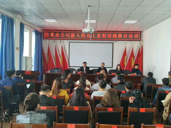 為加強(qiáng)新入職員工思想道德教育,引導(dǎo)新員工珍惜工作崗位,熱愛工作崗位,懂規(guī)矩、守紀(jì)律,以積極的心態(tài)、飽滿的熱情投入的工作和學(xué)習(xí)之中,10月10日,市自來水公司開展新入職員工思想道德教育培訓(xùn),培訓(xùn)為期一天,內(nèi)容包括:勞動(dòng)法規(guī)、企業(yè)機(jī)構(gòu)設(shè)置、勞動(dòng)紀(jì)律、傳統(tǒng)文化,思想道德教育講座等。培訓(xùn)在公司大會(huì)議室舉行,2017年以后新入職員工參加了培訓(xùn),黨委書記參加培訓(xùn)并講話,黨委委員、黨委工作部部長鄭麗君主持培訓(xùn)。