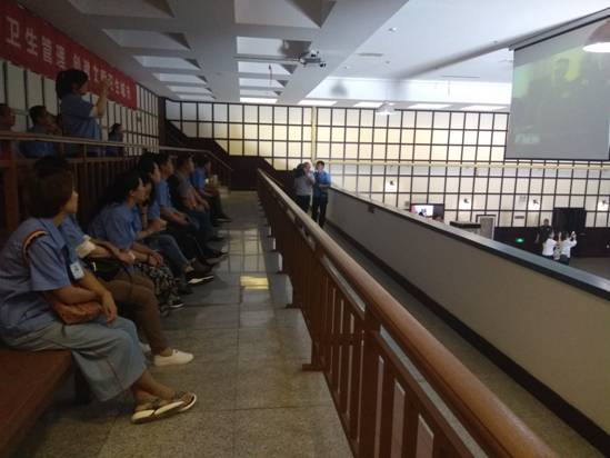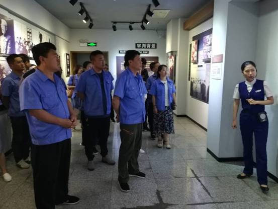 活動(dòng)的第一站是沈陽審判日本戰(zhàn)犯特別軍事法庭舊址。據(jù)講解員介紹,它是新中國在1956年審判日本戰(zhàn)犯的法庭遺址。陳列展覽包括文字、照片、史料,文物、多媒體演示等展覽形式。展覽共分為“審判背景” “審判準(zhǔn)備”“莊嚴(yán)審判”“尾聲”等四個(gè)部分,全面展示了日本戰(zhàn)犯在沈陽接受審判的整個(gè)過程,重現(xiàn)了1956年中國政府成立特別軍事法庭,對(duì)日陸軍中將師團(tuán)長鈴木啟久、偽滿洲國國務(wù)院總務(wù)長官武部六藏等36名戰(zhàn)犯進(jìn)行審判的歷史場(chǎng)景。黨員們?cè)诂F(xiàn)場(chǎng)莊嚴(yán)地舉起右拳,面對(duì)黨旗宣誓,重溫入黨誓詞,一起回顧入黨初心。宣誓結(jié)束后,隨同講解員參觀了各個(gè)展廳及復(fù)原的公審日本戰(zhàn)犯場(chǎng)景蠟像,觀看了公審日本戰(zhàn)犯的影像紀(jì)錄片,這場(chǎng)令中國人民揚(yáng)眉吐氣的審判,讓大家深刻感受到了中國對(duì)待日本戰(zhàn)犯的寬大胸懷,對(duì)祖國的敬佩之心油然而生。