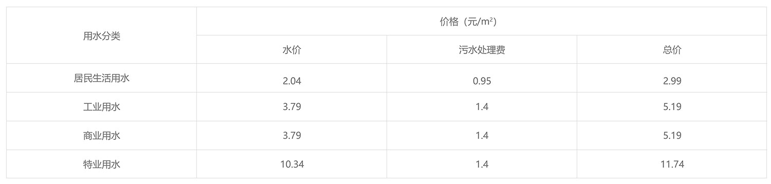 2001年水價調(diào)整后,居民1.7元/噸,工業(yè)2.5元/噸,商業(yè)5.5元/噸,特業(yè)10元/噸;